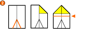 Desdoblá el papel; los pliegues del paso anterior deben quedar abajo. Doblá hacia adentro las esquinas superiores, haciendo que coincidan con la línea del medio. Después, doblá la punta hacia abajo, a unos dos dedos de distancia de donde se juntaron las esquinas.